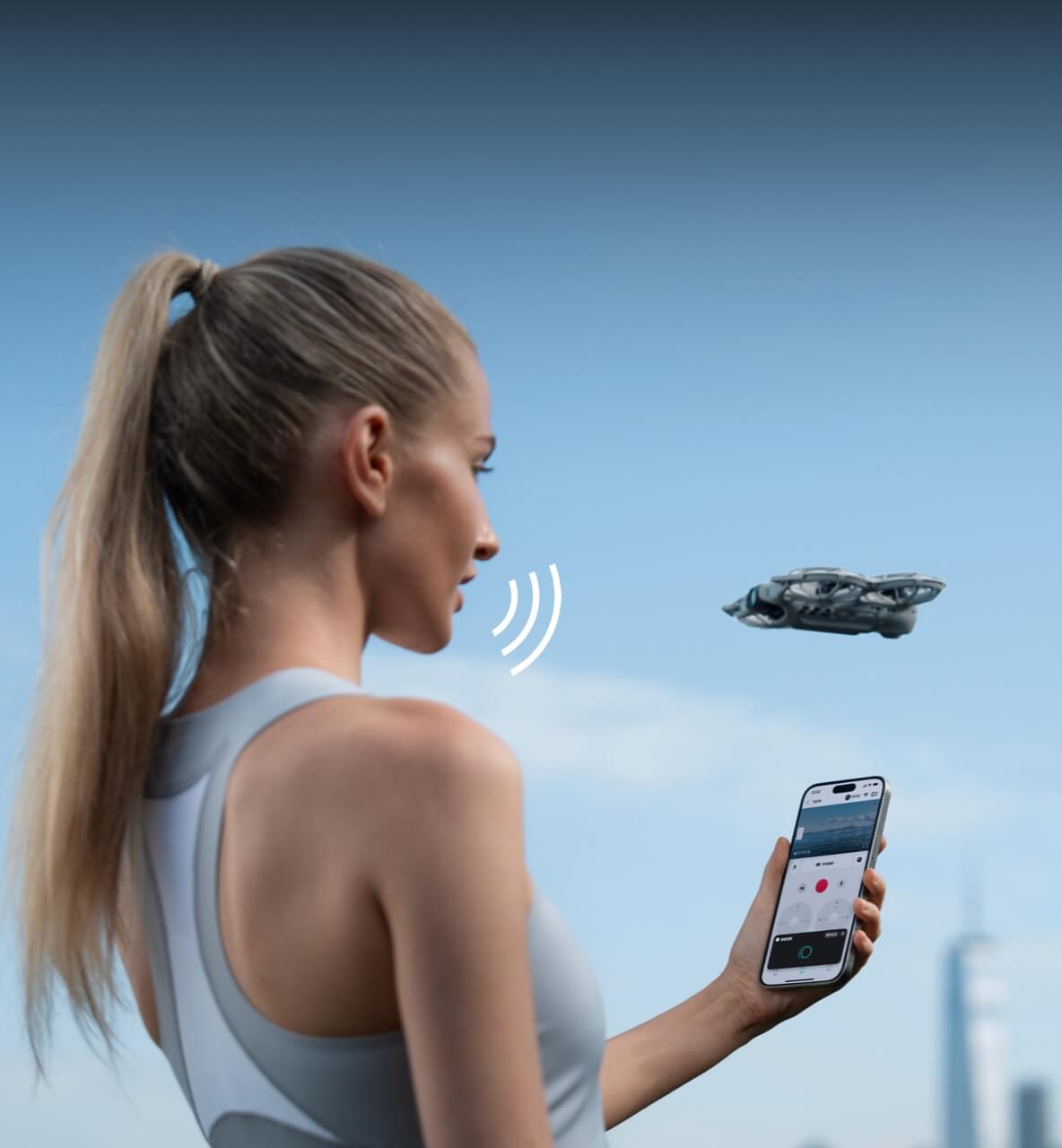 شما می‌توانید با استفاده از تلفن هوشمند یا هدفون بلوتوث خود، با آزادی کامل، چه در حال دویدن و چه در حال دوچرخه‌سواری، دستورات پرواز را ارسال کنید. وقتی به تلفن شما متصل می‌شود، می‌تواند صدا را ضبط کرده و به طور هوشمند نویز را کاهش دهد و به طور خودکار صدای پروانه را فیلتر کند.